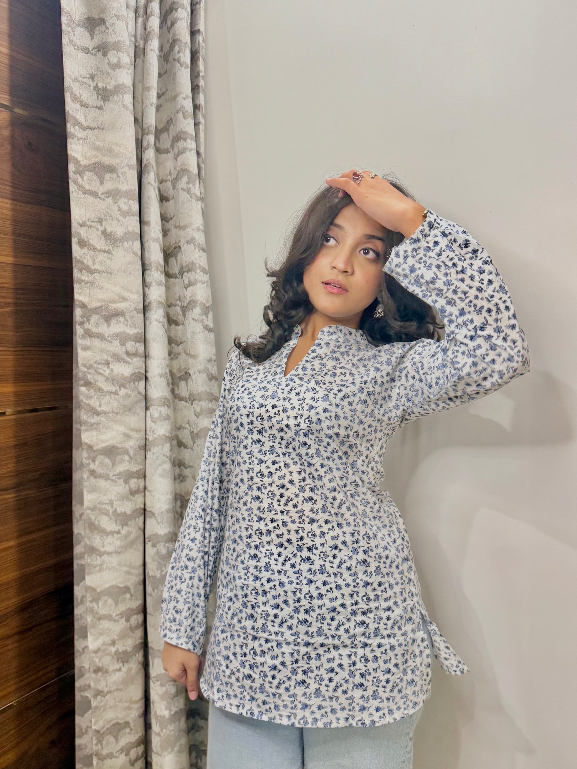 Embrace your soft girl aesthetic with Kaju Katli , a full-sleeved kurti with tiny little blooms—made to flatter every shape and size, and to make you feel soft, dreamy, and effortlessly fairy-like.